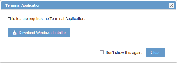 The Terminal Application installs as a standard Windows application on the local desktop computer. You must download and execute the native installer, on your local desktop, before the Terminal Application will launch.