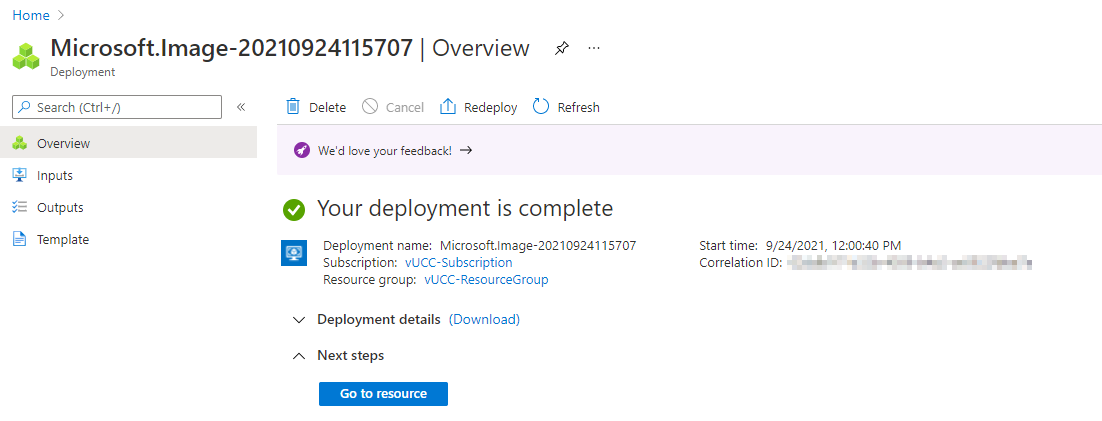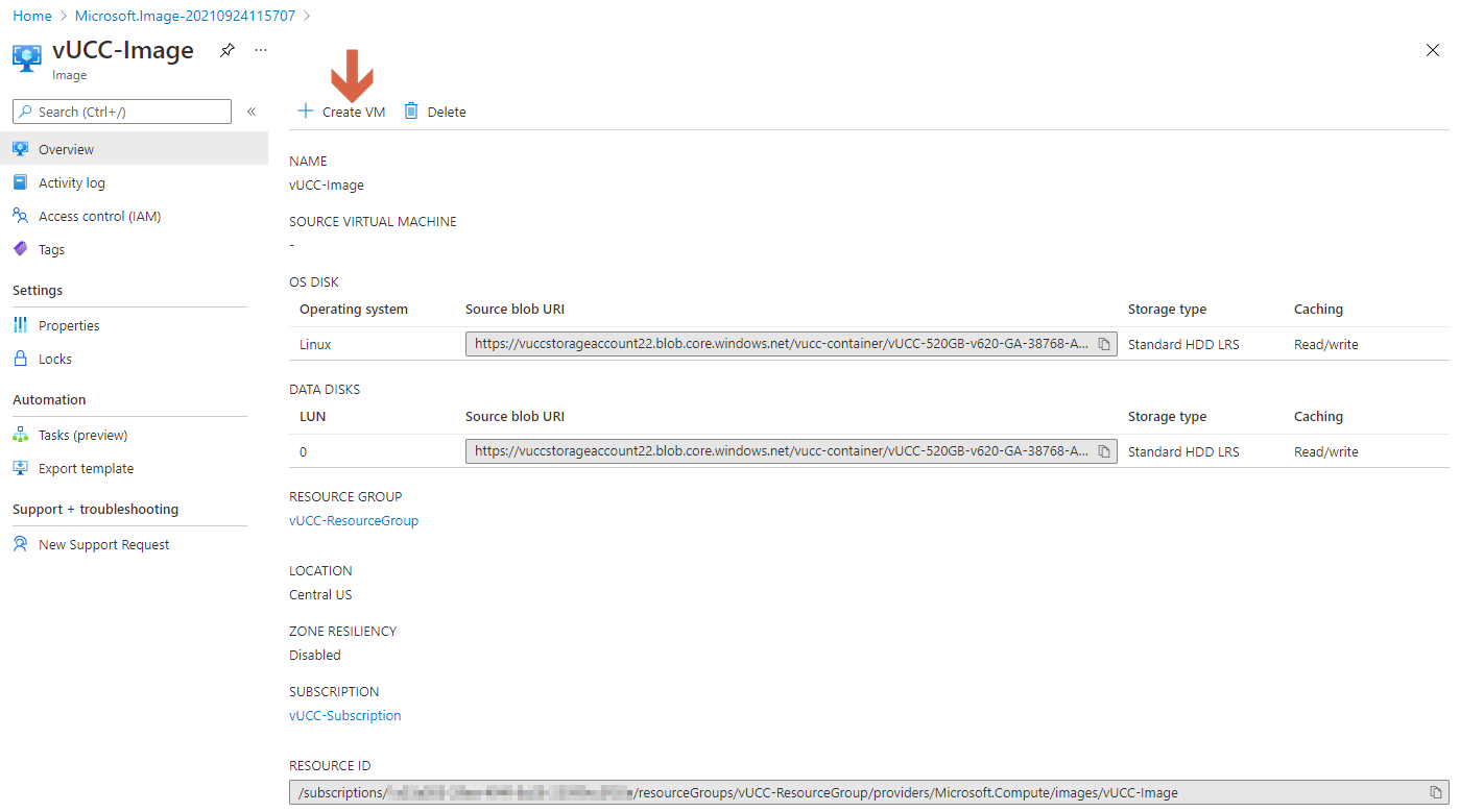 Unless you plan to deploy another instance of the CC for High Availability (HA), you can now delete the Image that was used to create the VM. You can also delete the uploaded VHD files that are Page blobs in your storage account container. You can also delete the Container if you created this just for uploading the CC.