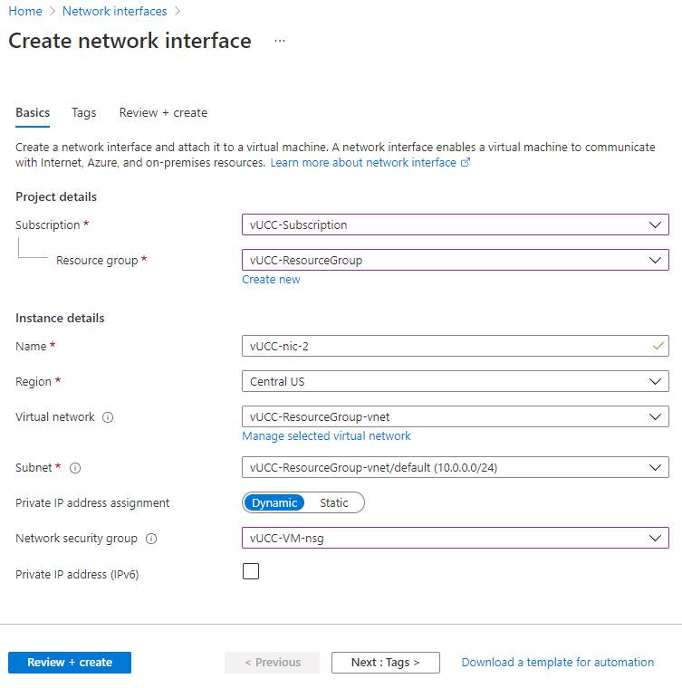 Start by creating a new Network interface. You can use the same Subscription, Resource group, Region, Virtual network, and Network security group that your VM is already using.
