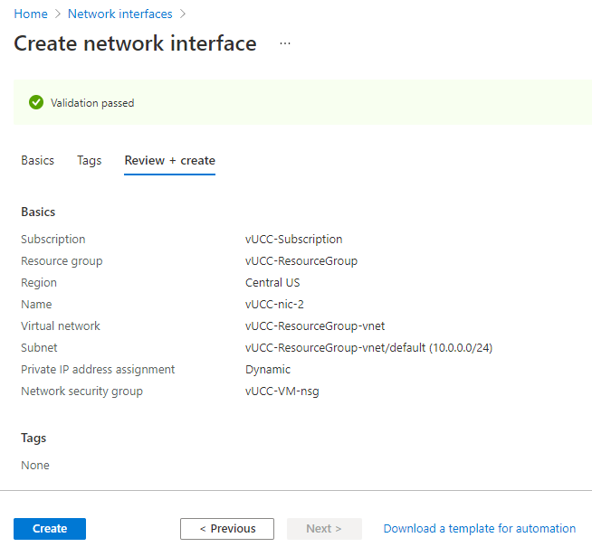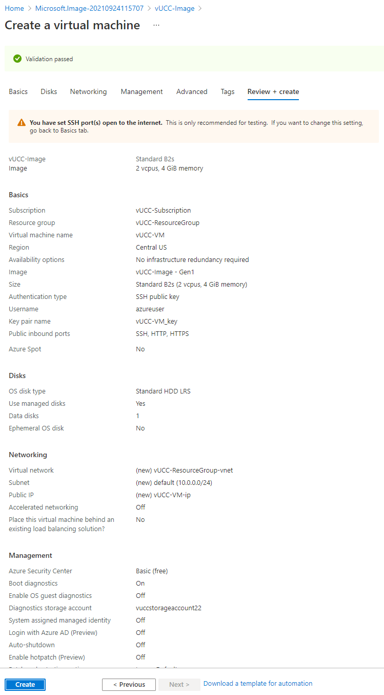 If validation succeeds, click Create.