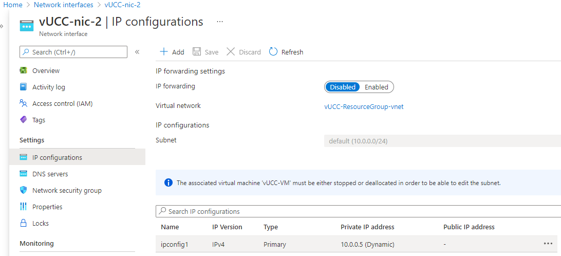 Assign a public IP to the new network interface. Navigate to IP configurations and select the Primary config.