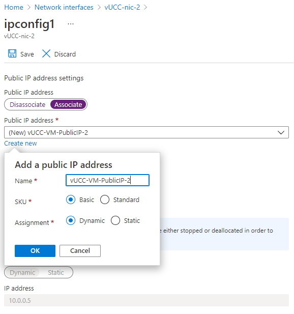Associate a Public IP address to this config. Then create a new public IP address and select Save.