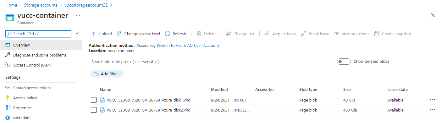 You can also verify that the VHDs have been uploaded from the web.